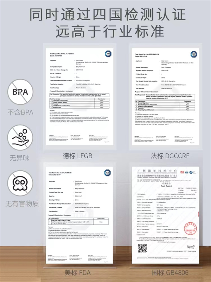 2005年起,歐盟最新頒布針對與食品接觸物質(zhì)的指令2004/1935/EC,它于2006年10月27日起便強制執行了。自此出口歐盟與食品接觸的材料必須符合1935/2004/EC相關(guān)標準的規定。還有美國的FDA、德國的LFGB。